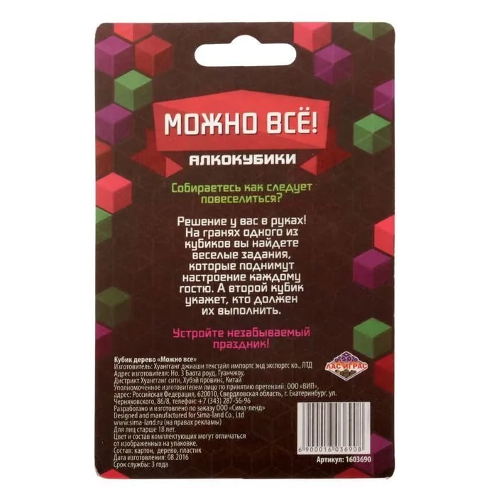 Купить кубик "можно все", алкокубики для принятия решений от 60 руб. с доставкой до пункта выдачи в Туле. Интернет магазин ДекаМаркет. Оплата при получении.